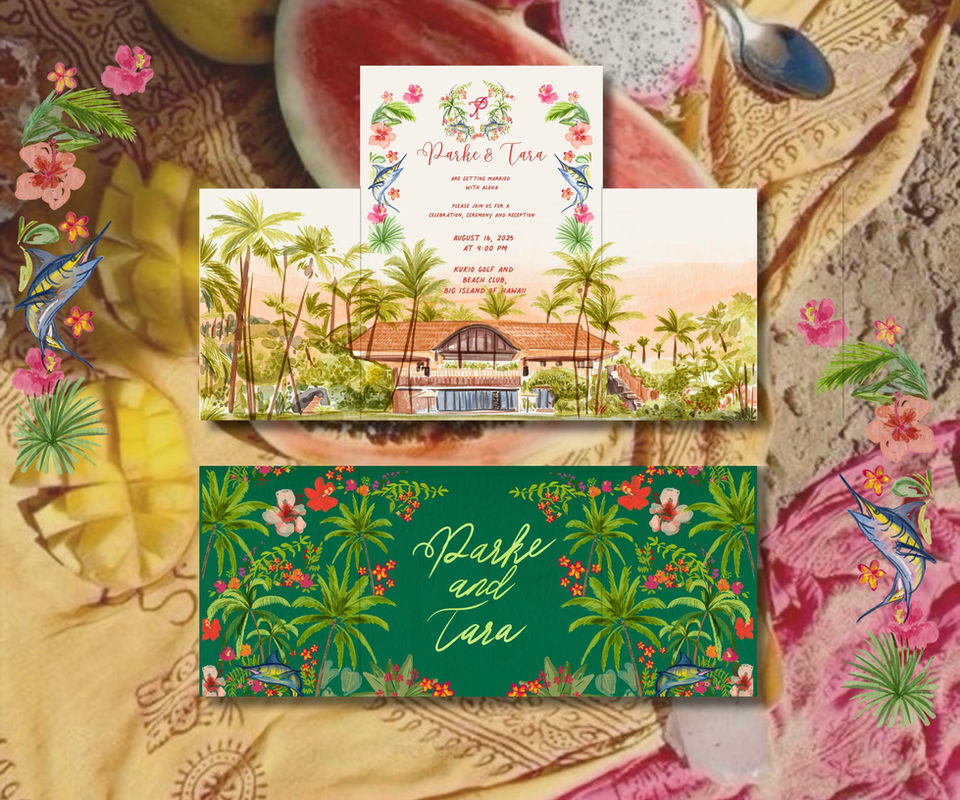 For couples who value refined elegance and meaningful artistry. This essential suite includes a custom wedding invitation, RSVP card, and details card — each with hand-illustrated touches to reflect your unique story. Perfect for intimate weddings or elopements with timeless charm.